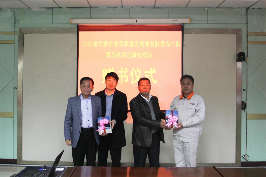 省民營企業(yè)高質(zhì)量發(fā)展服務(wù)隊(duì)和青島鐵路運(yùn)輸檢察院的各位領(lǐng)導(dǎo)參觀了科技文化館、智能化生產(chǎn)車間和信息化系統(tǒng)管理平臺(tái),對(duì)我公司在全面落實(shí)疫情防控和復(fù)工復(fù)產(chǎn)等方面的做法給予充分肯定。最后,在公司培訓(xùn)中心進(jìn)行了座談,共同探討今后高質(zhì)量發(fā)展服務(wù)相關(guān)工作的重點(diǎn)和方向,并舉行了贈(zèng)書儀式和防疫物資捐贈(zèng)儀式。